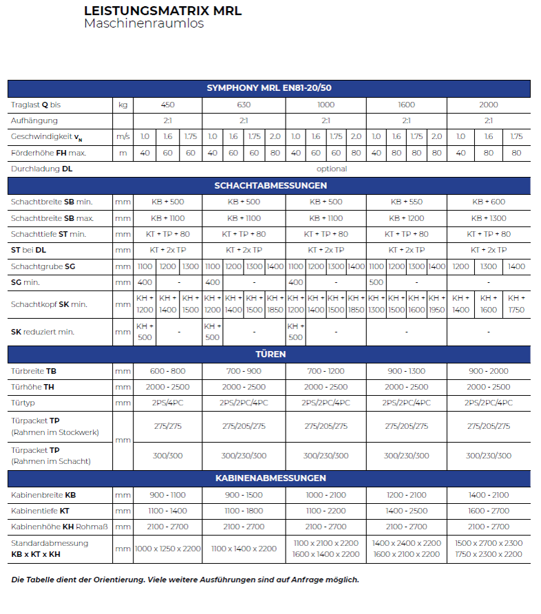 SYMPHONY MRL is a machine room-less electric traction elevator with high ride comfort and low noise emissions. With this type of elevator, no additional machine room is required. The gearless drive and the control unit are housed in the shaft head. The control unit is usually located at the top landing next to the landing door, in front of the door frame or integrated in the door frame.